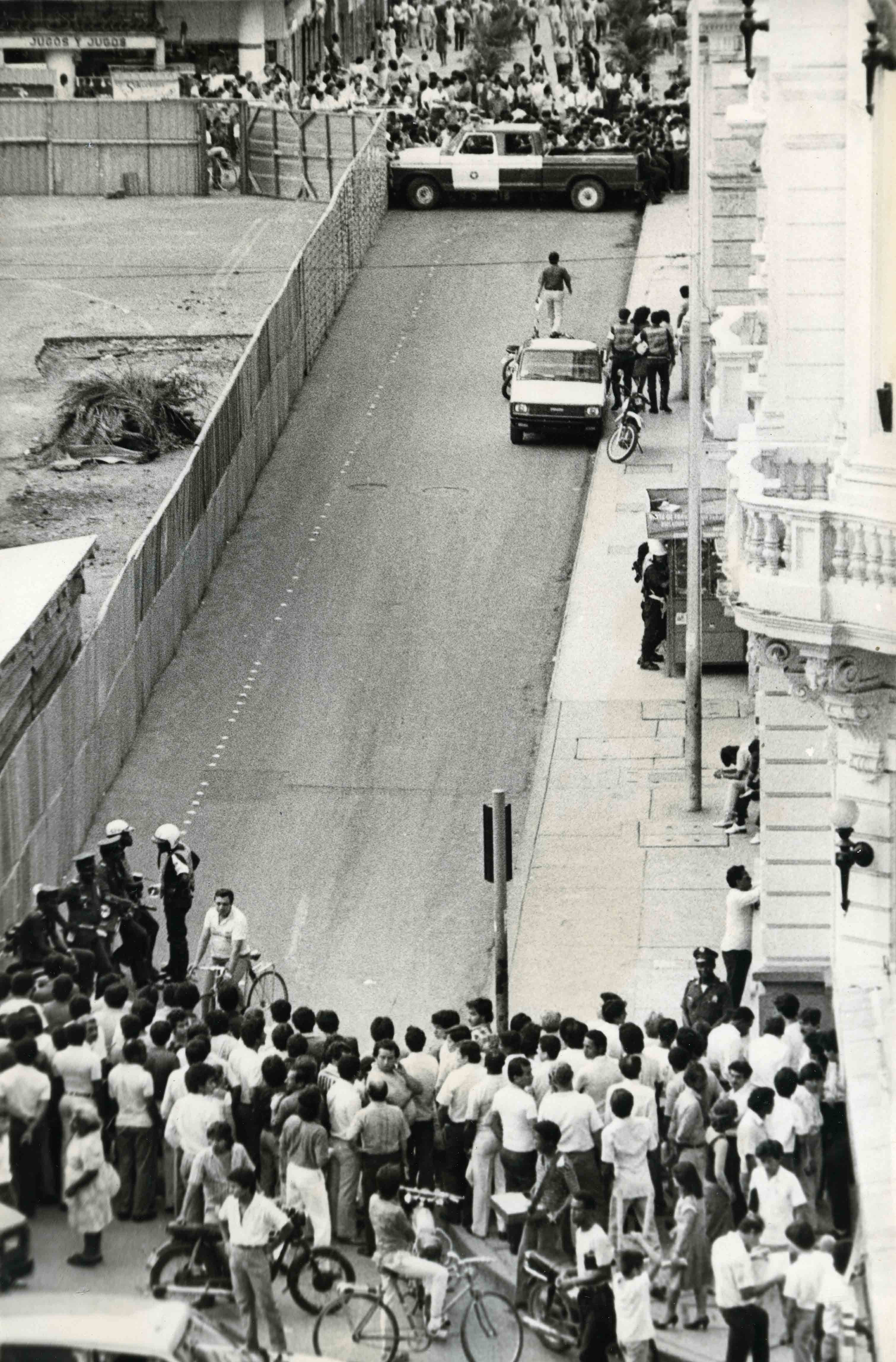 Frente al Palacio Nacional se realiza el "Juicio de los 450 Años" en Santiago de Cali >El Archivo del Patrimonio Fotográfico y Fílmico del Valle del Cauca es responsabilidad de la Biblioteca Departamental del Valle Jorge Garcés Borrero, por convenio de cooperación suscrito con la Secretaria del Cultura Departamental, con el fin de aunar esfuerzos para su conservación, preservación y divulgación del Archivo entre la comunidad Vallecaucana, especialmente entre los estudiantes e investigadores que visitan la Biblioteca, propiciando el su uso y consulta permanente. La universidad Icesi es un colaborador en el proceso de difusión, facilitando la tecnología que permite la consulta de las imágenes.
