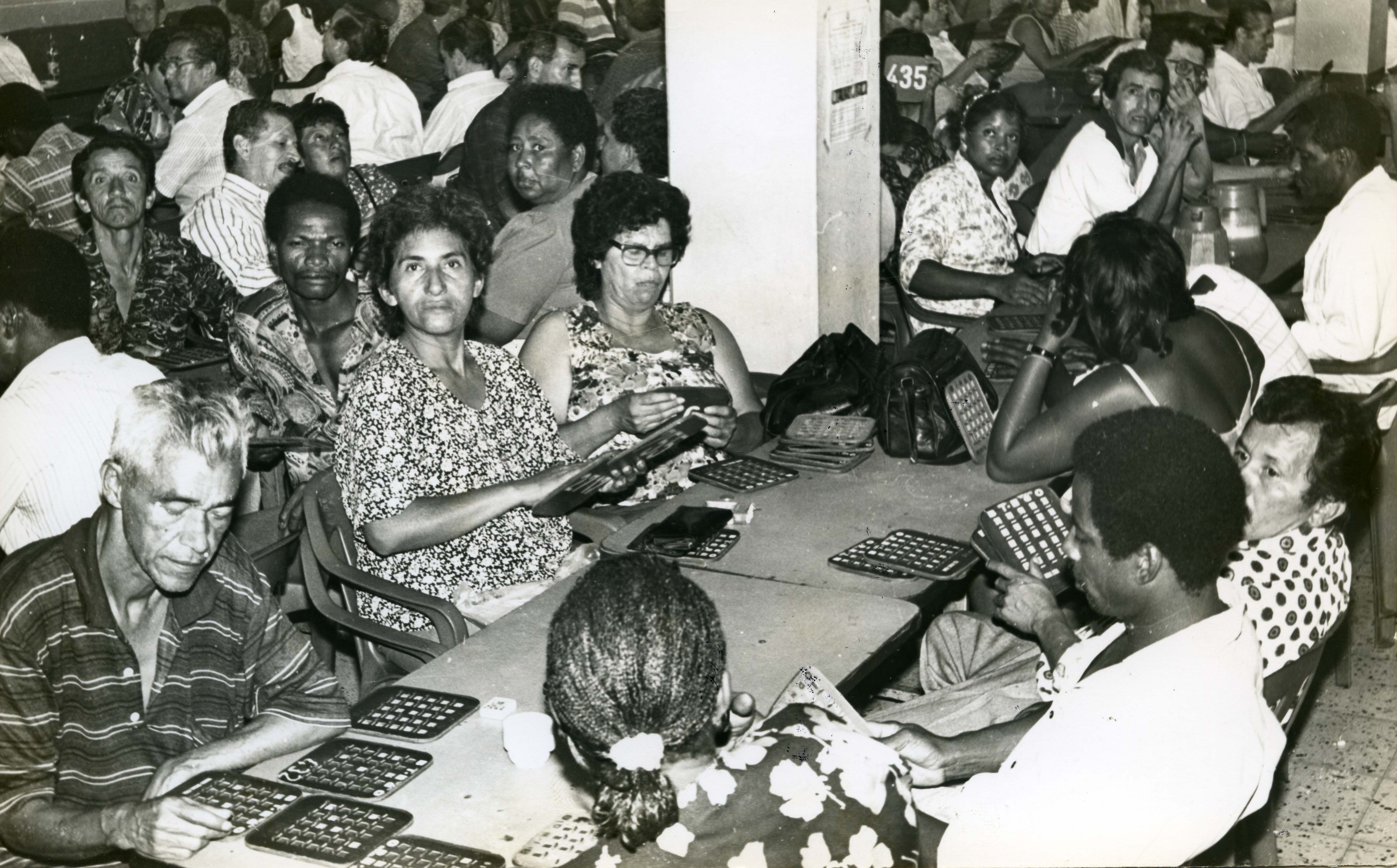 En el pie de foto dice lo siguiente: el bingo un negocio que se volvió una actividad industrial. Observamos una gran cantidad de personas con la tabla del bingo, jugando hasta que la terminen de llenar con los números correspondientes