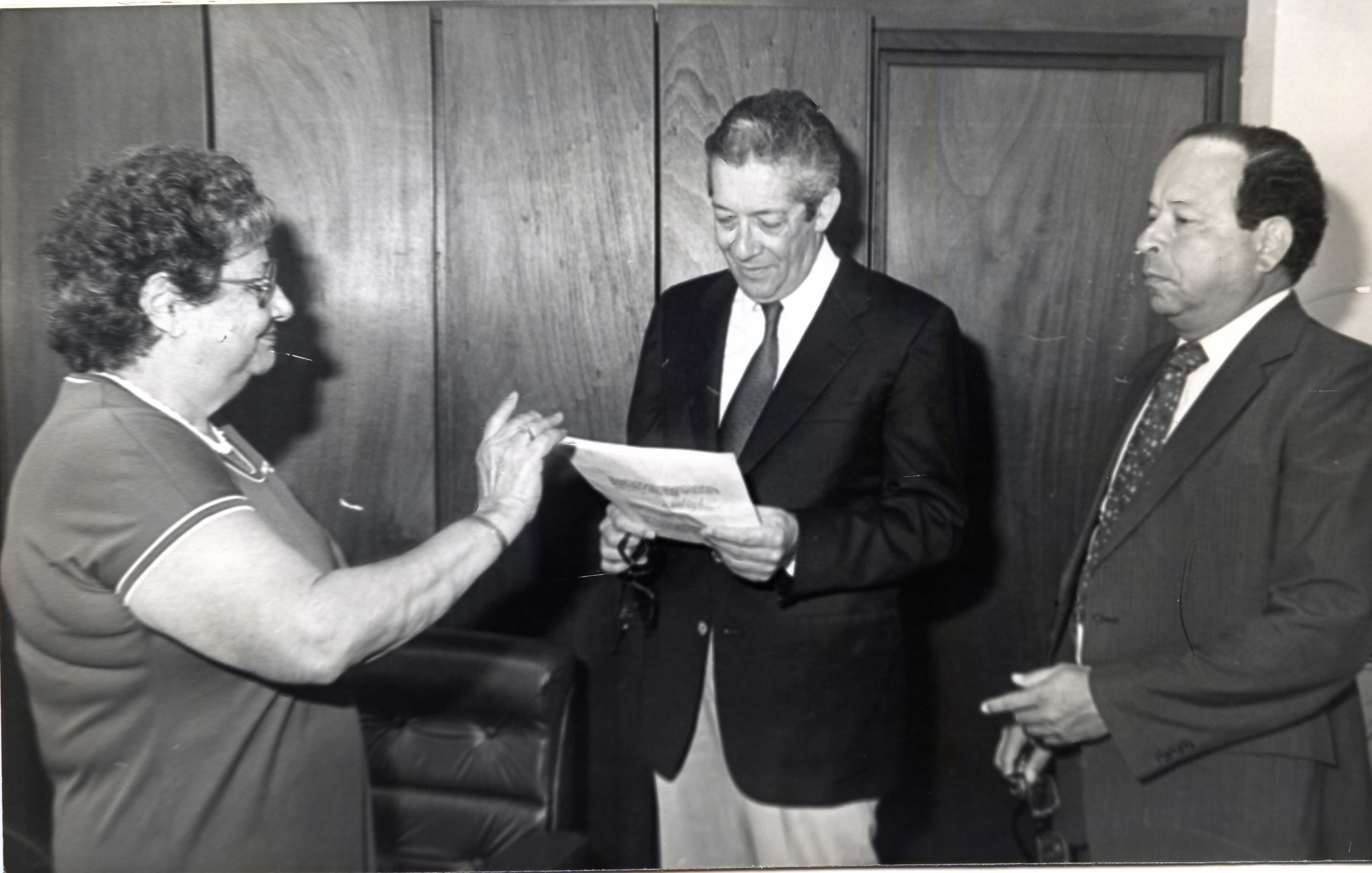 Nacionalización de la Señora Esther Capuanoy Barrocas, nacida en Charlo Idine de Turquía. En la fotografía se distingue el Alcalde Alvaro Navía Prado y el Secretario General de la Alcaldía Octavio Montalvo Escobar >El Archivo del Patrimonio Fotográfico y Fílmico del Valle del Cauca es responsabilidad de la Biblioteca Departamental del Valle Jorge Garcés Borrero, por convenio de cooperación suscrito con la Secretaria del Cultura Departamental, con el fin de aunar esfuerzos para su conservación, preservación y divulgación del Archivo entre la comunidad Vallecaucana, especialmente entre los estudiantes e investigadores que visitan la Biblioteca, propiciando el su uso y consulta permanente. La universidad Icesi es un colaborador en el proceso de difusión, facilitando la tecnología que permite la consulta de las imágenes.