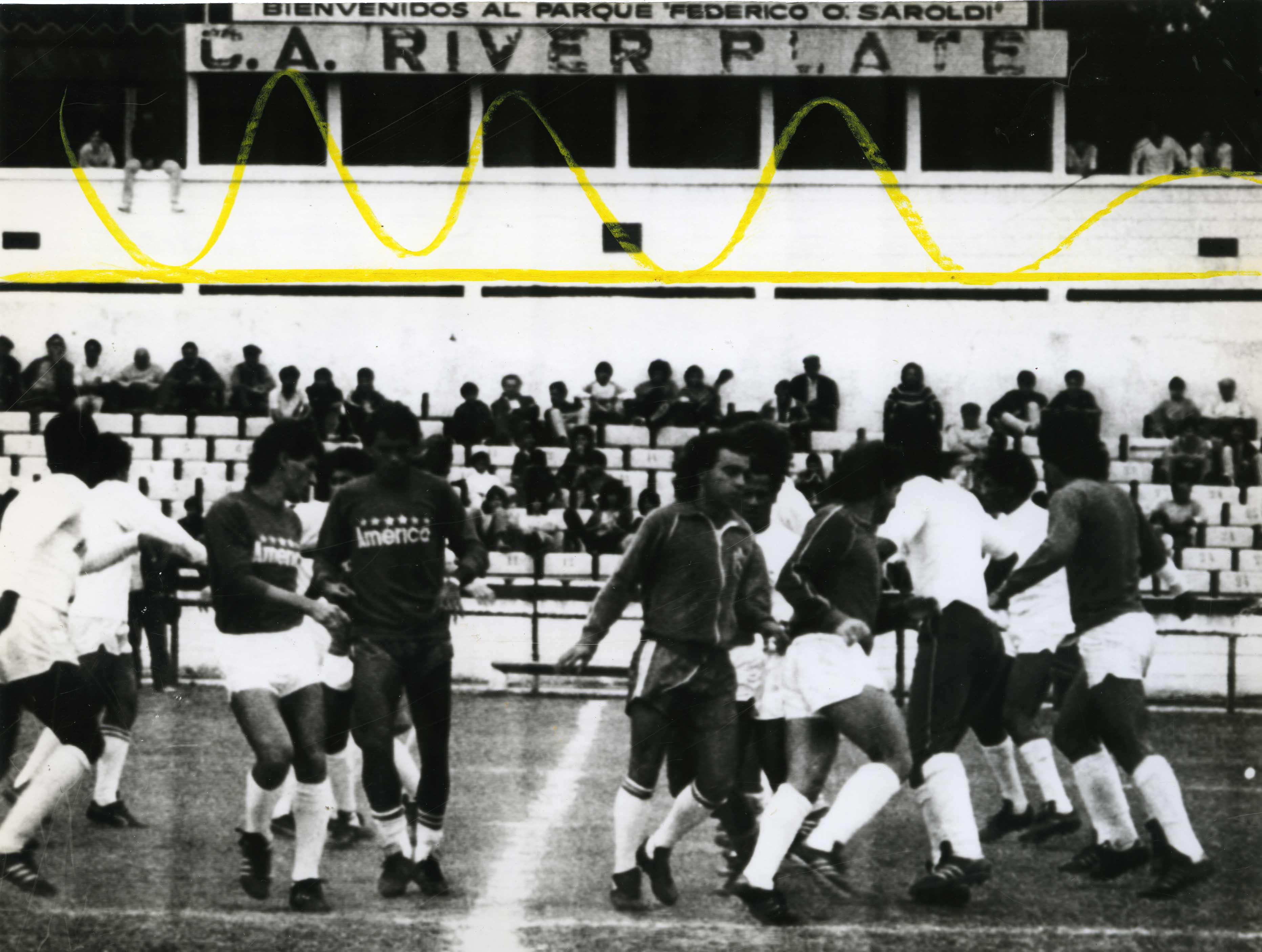 Jugadores del América de Cali en el intermedio del partido contra Uruguay en Montevideo >El Archivo del Patrimonio Fotográfico y Fílmico del Valle del Cauca es responsabilidad de la Biblioteca Departamental del Valle Jorge Garcés Borrero, por convenio de cooperación suscrito con la Secretaria del Cultura Departamental, con el fin de aunar esfuerzos para su conservación, preservación y divulgación del Archivo entre la comunidad Vallecaucana, especialmente entre los estudiantes e investigadores que visitan la Biblioteca, propiciando el su uso y consulta permanente. La universidad Icesi es un colaborador en el proceso de difusión, facilitando la tecnología que permite la consulta de las imágenes.