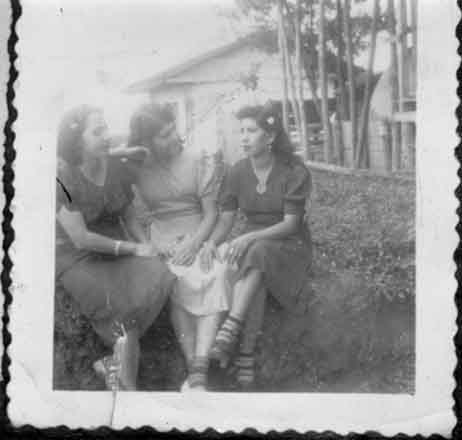 La hermana de Elizabeth Granada en una entretenida charla con sus amigas. Restrepo, 1948.