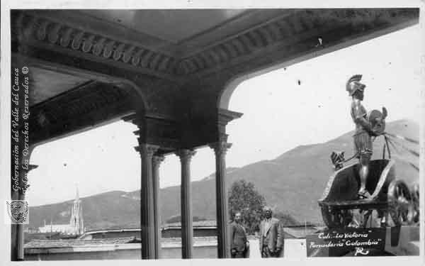 PEDRO A. RIASCOS (1950). "La Victoria" donde se hayaba la escultura de un soldado romano (hoy desaparecida) & 501119. OTRO: Biblioteca Departamental Jorge Garces Borrero.
