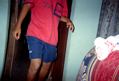 Plano medio largo sin cabeza. Hombre en interior. Sobresale porción de mueble en inferior derecho.
