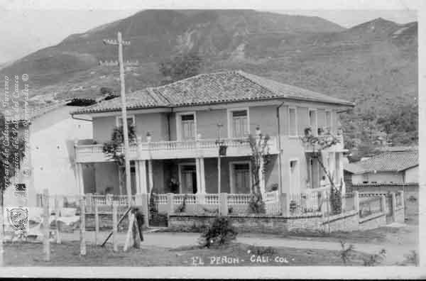 Barrio el Peñón, en él se construyeron casas y habitaron familias de la élite local. Hoy se conserva como un barrio de las familias de clase media y media alta. Cali. C. 1960