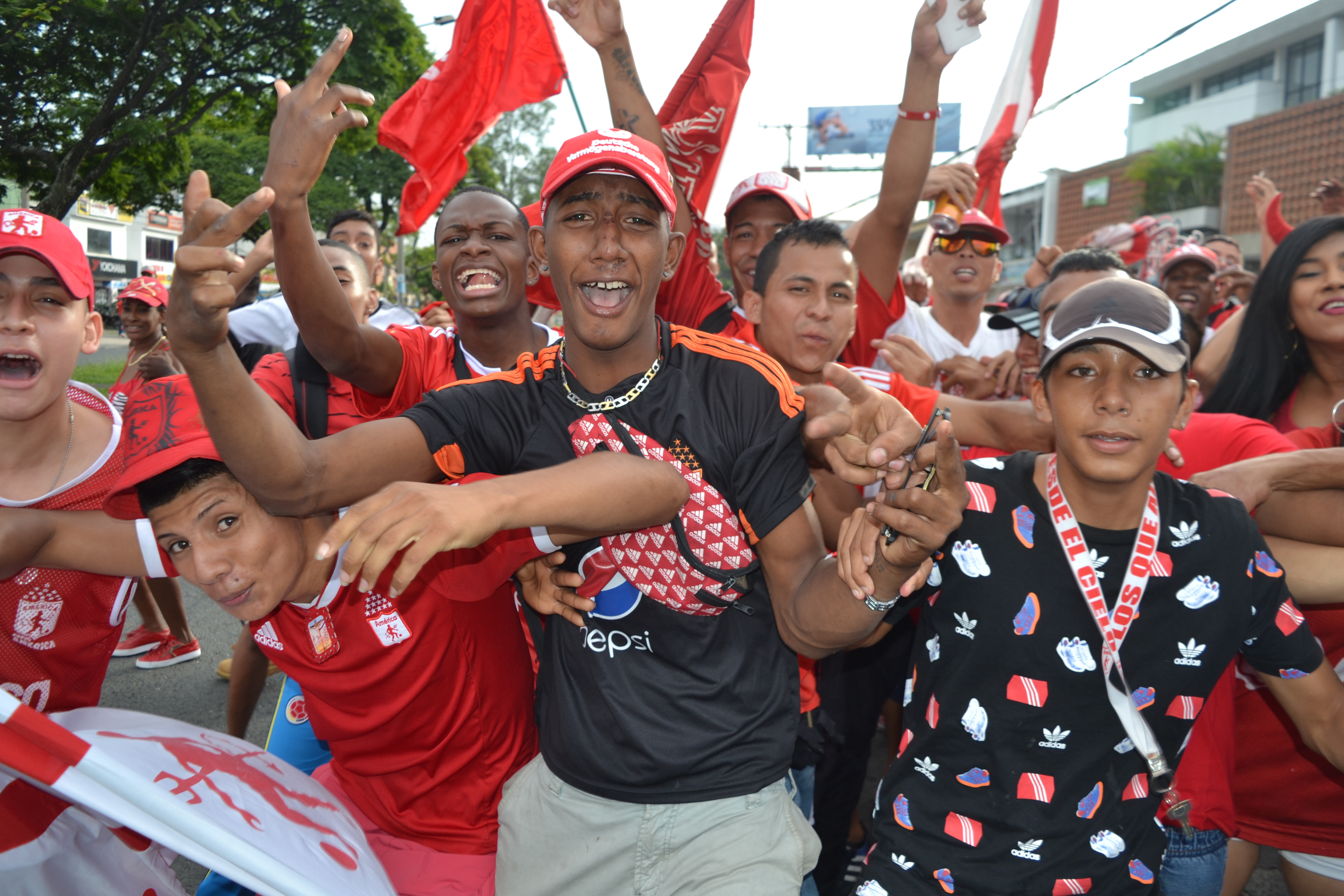 Se aprecia hinchas del América de Cali celebrando triunfo de su equipo amado
