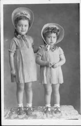 Hermanas Moreno Ochoa luciendo las pavitas de niña para una foto estudio