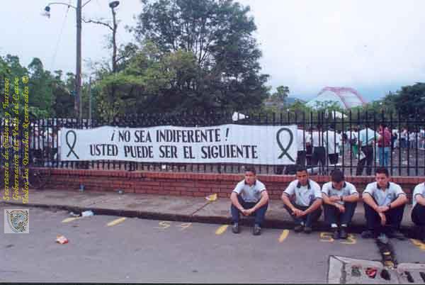 GUSTAVO VALENCIA (2000). Manifestación en contra del secuestro y la violencia en la Plaza de Toros denominada zona de distensión durante el famoso "secuestro de La María" & 100338. SANTIAGO DE CALI: Biblioteca Departamental Jorge Garces Borrero.