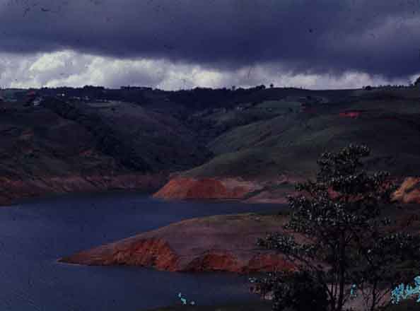 Vista parcial del Lago Calima. Al fondo se observan las casas de los diferentes parcelaciones. Darién. 1985