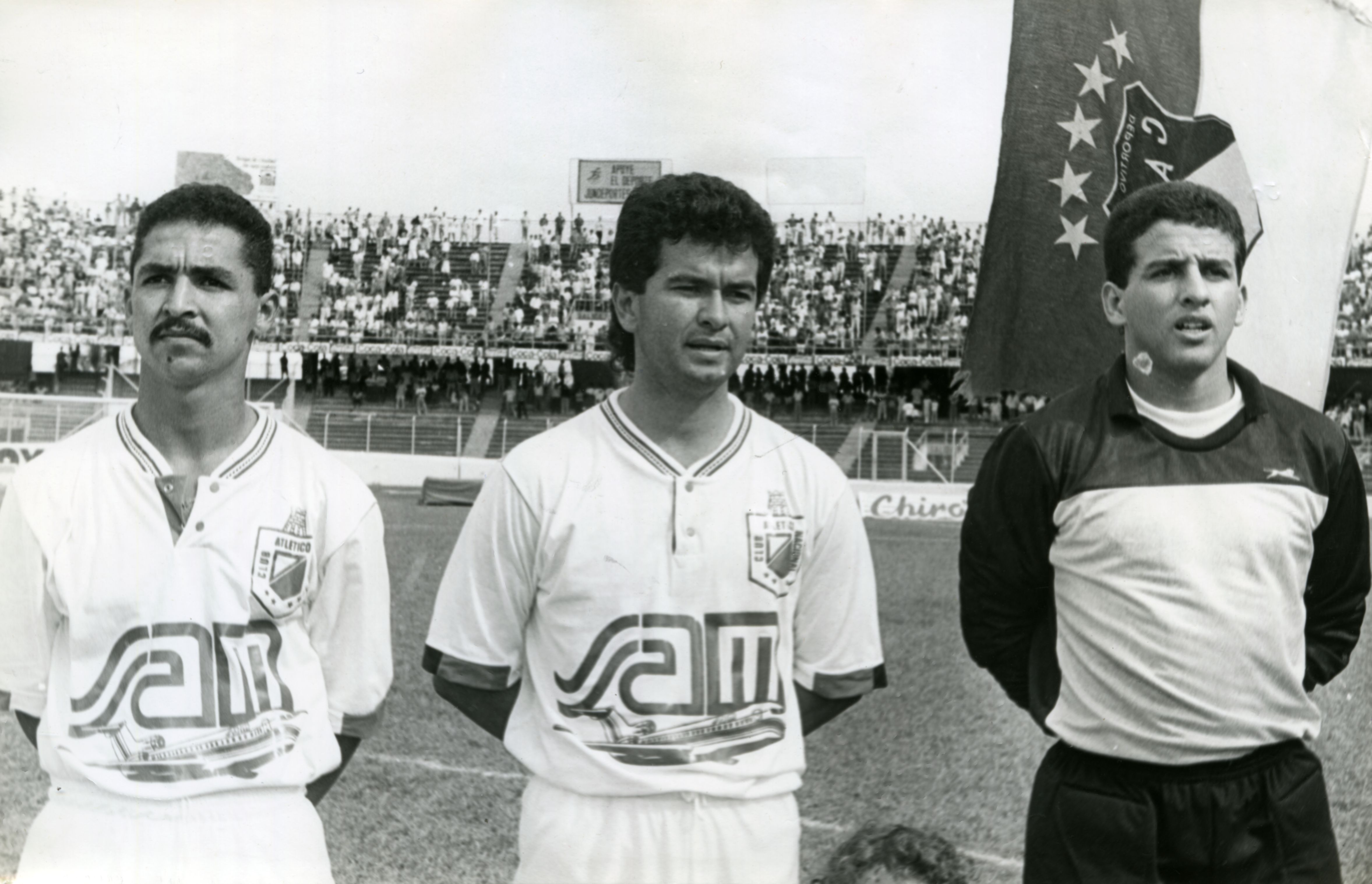 | dc.description.abstract | Partido Cali - Nacional en el Pascual Guerrero. En la foto posan de izquierda a derecha: Oscar Galeano , John Jairo Carmona y José Fernando Castañeda, jugadores de Atlético Nacional. | spa |