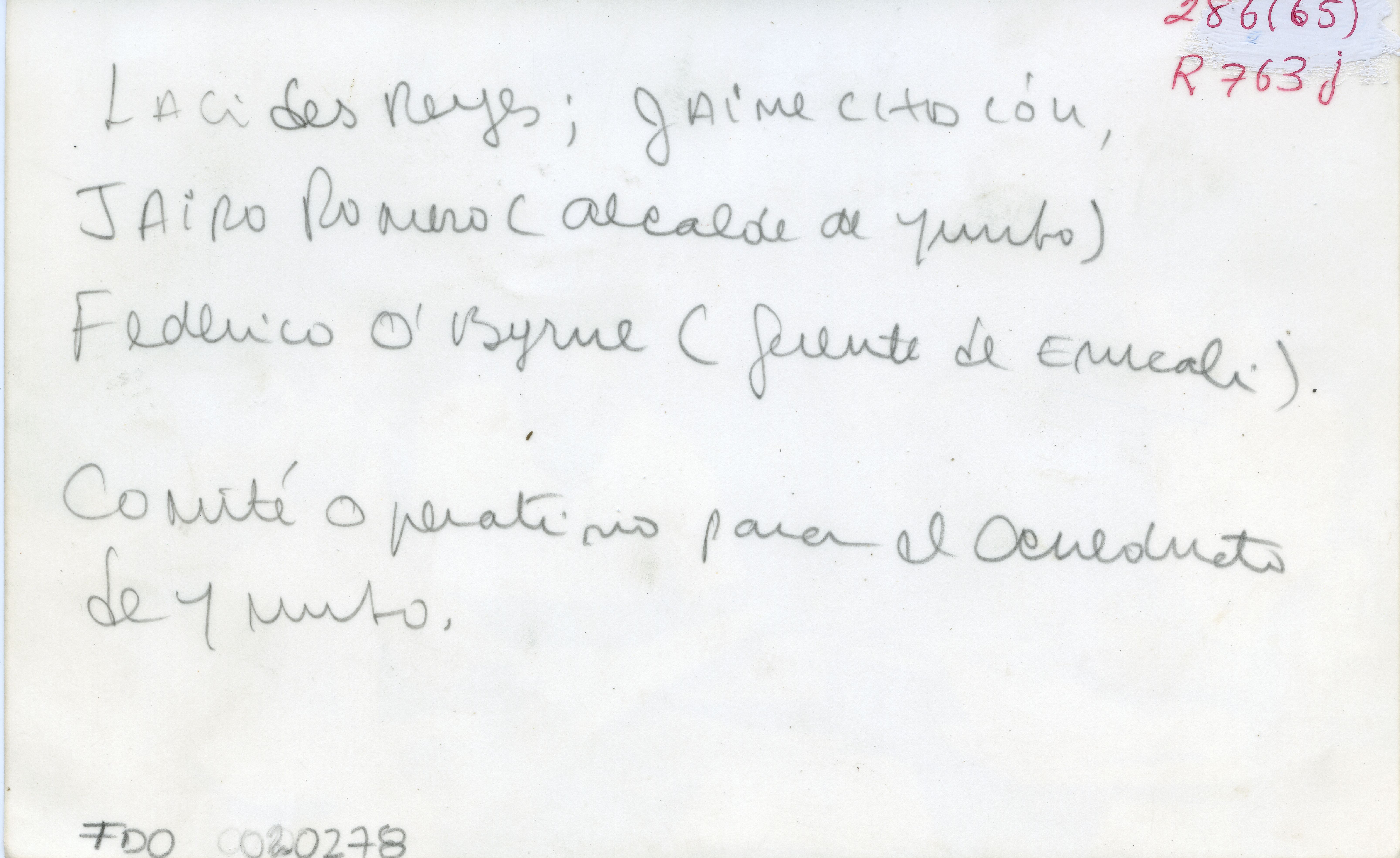 En la fotografía podemos observar al alcalde de Yumbo Jairo Romero, reunido con Lacides Reyes, Jaime Chacón y Federico O"Byrne, hablando sobre la planeación y desarollo del acueducto para el municipio.