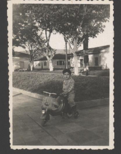 Riofrío, Valle del Cauca. Fundado en 1567, por Pedro Marmolejo. Nombres: Santa María Magdalena de Riofrío, Palomino, Higuerón. Municipio desde 1923. Economía importante en Agricultura, Caficultura, Silvicultura, Caña de Azúcar, entre otros. Atractivo turístico: Plaza Principal, Río Riofrío, Reserva Ecológica Fedena, Ferias y Fiestas. Observamos en la imagen, niño Tulio Enrique Holguín Junior. Se aprecia el niño en moto