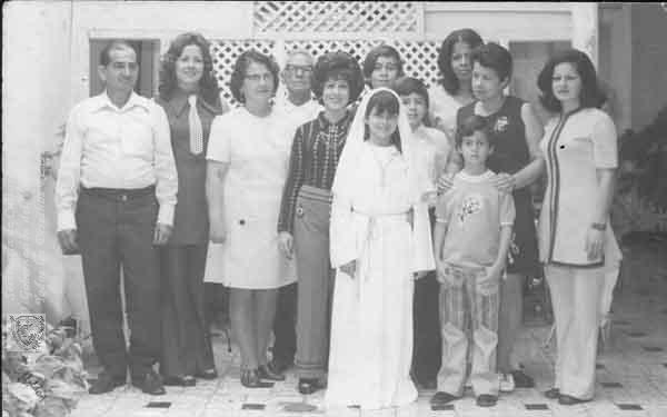 Marco Valencia, Martha Lozano, Carlina, Zoila Valencia, María Diva, Colombia Lozano, Carlos y Martha Carrasquilla. Reunidos en la primera comunión de la niña Valencia. Tuluá, 1970.