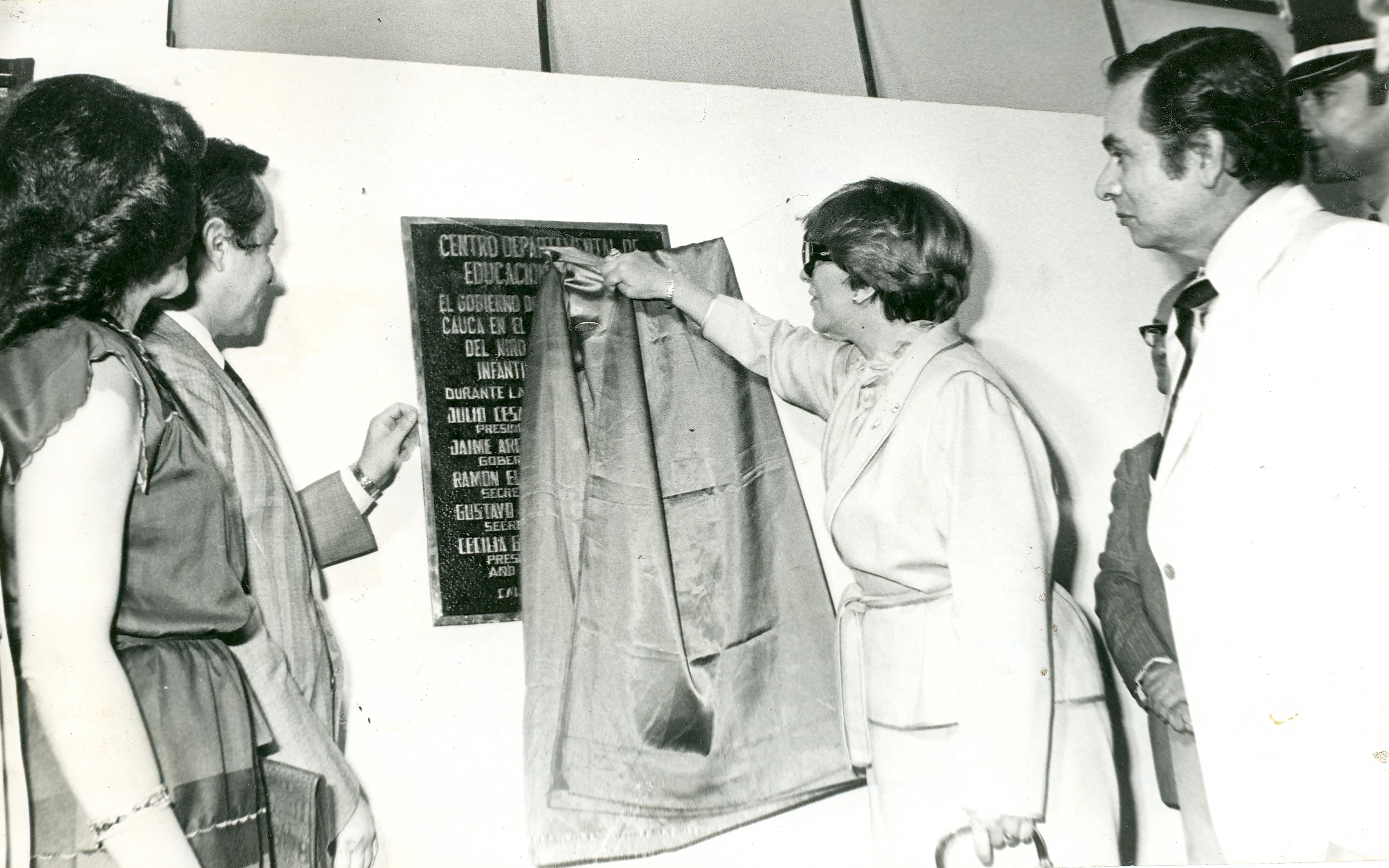Nydia Quintero de Turbay, primera dama de la nación, descubre la placa conmemorativa de la inauguración del Centro Departamental de Educación Especial, creado bajo los auspicios del Instituto Tobías Emanuel de Cali. El Archivo del Patrimonio Fotográfico y Fílmico del Valle del Cauca es responsabilidad de la Biblioteca Departamental del Valle Jorge Garcés Borrero, por convenio de cooperación suscrito con la Secretaria del Cultura Departamental, con el fin de aunar esfuerzos para su conservación, preservación y divulgación del Archivo entre la comunidad Vallecaucana, especialmente entre los estudiantes e investigadores que visitan la Biblioteca, propiciando su uso y consulta permanente. La universidad Icesi es un colaborador en el proceso de difusión, facilitando la tecnología que permite la consulta de las imágenes.