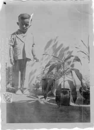 Nelson Gomez, posando en el patio de la casa, junto a las matas de mamá