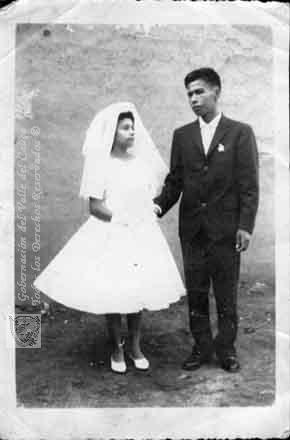 Bernardino Damián y esposa por identificar durante la ceremonia de boda, Dagua, en fecha por definir.