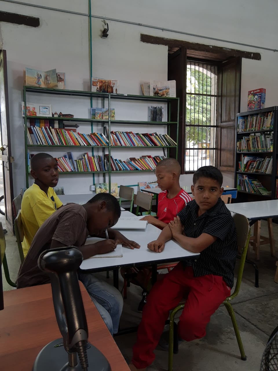 Se aprecia niños usuarios de la biblioteca municipal de El Cerrito