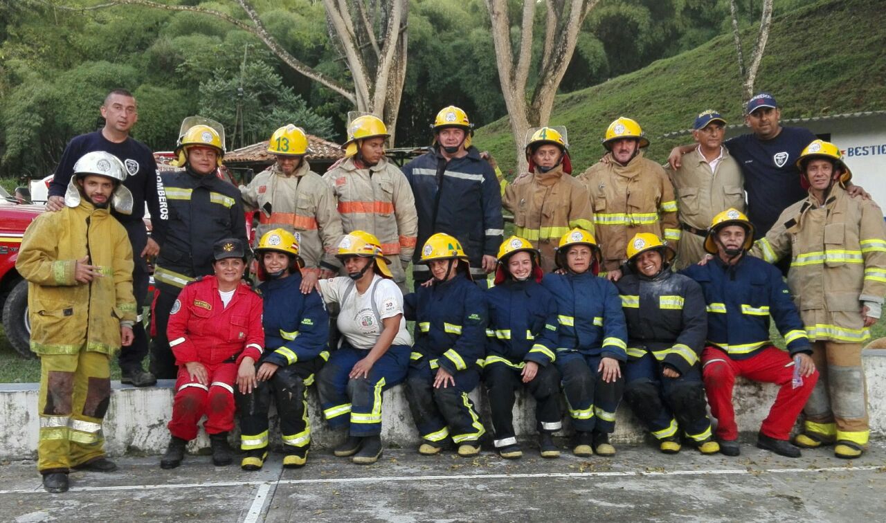 Plano general de personas con indumentaria de los bomberos. El participante de la campaña señala: "Bomberos poe un día administración municipal 2016-2019."