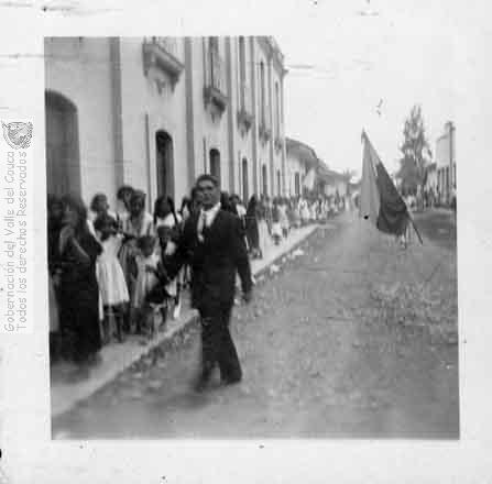 | dc.description.notes | Desfile (por identificar), en primer plano en la calle aún sin pavimentar frente a la alcaldía municipal, se cruza el Ex alcalde de l Municipio Alfonso Campo. Guacarí. C. 1950. | spa |