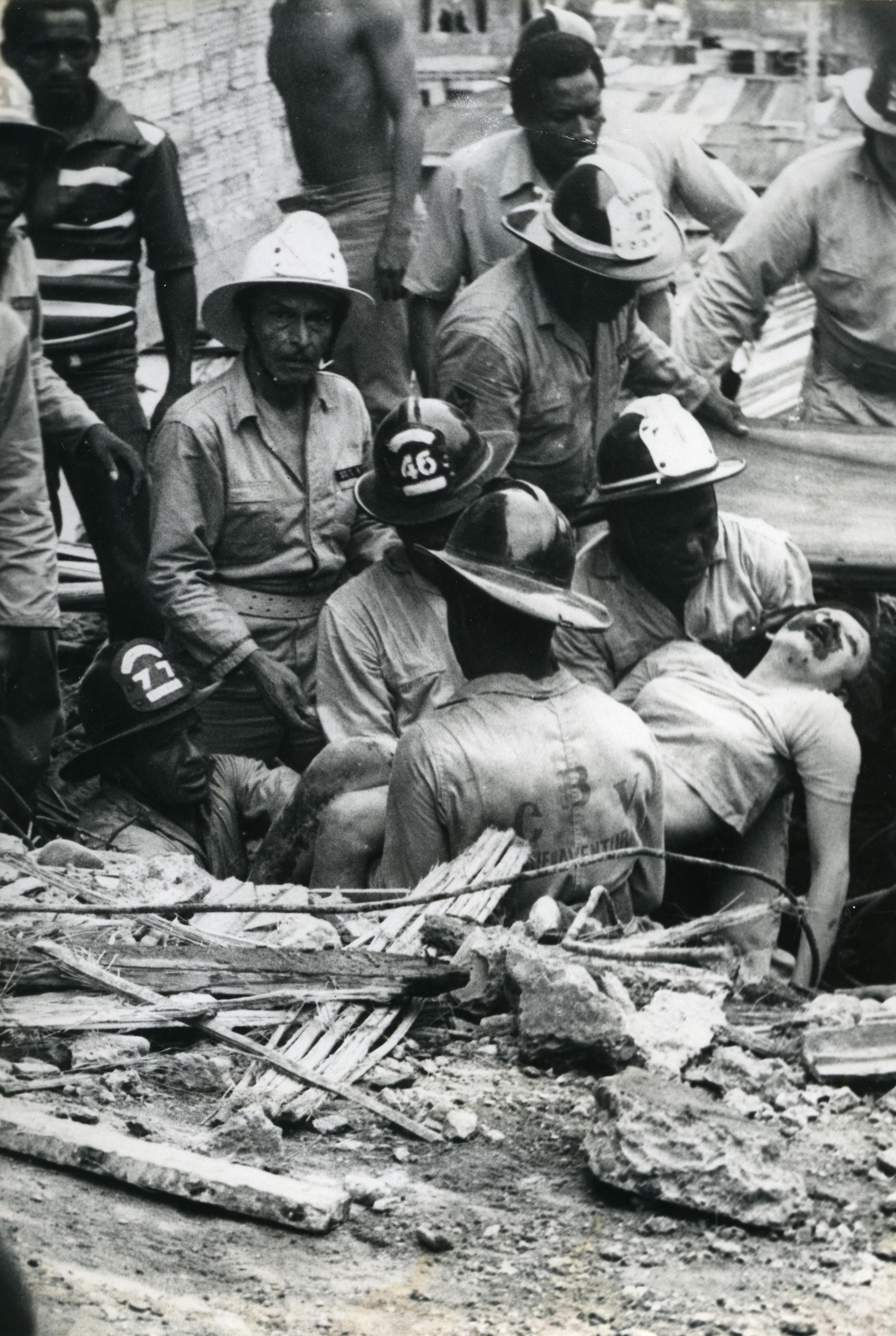 En la gráfica se aprecia escena de la tragedia de Buenaventura. Observamos bomberos socorren una mujer herida