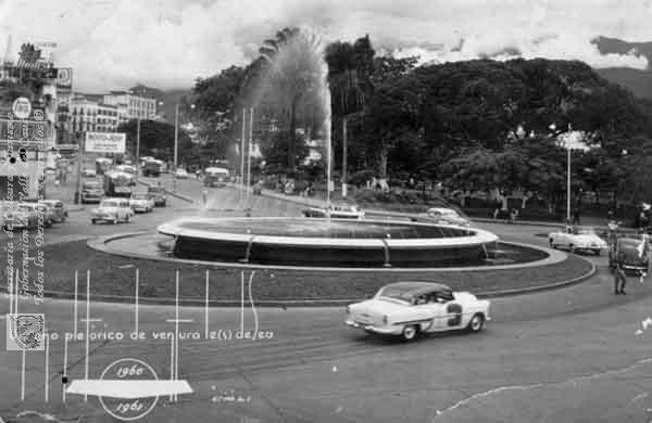 Carrera 1a. con calle 15. Primera glorieta que se construyó en la ciudad. Cali, C. 1960.