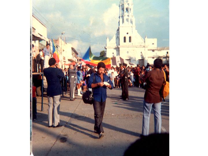 Ceremonia de entrega de los Simbolos Patrios: Bandera, Himno y Escudo, a los habitantes del municipio de Pradera.Pradera, 1985.