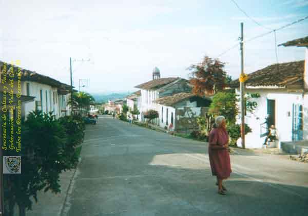 CARLOS HUMBERTO RODRIGUEZ (1966). Rosa Elena de Rivera cruzando la calle principal de Ulloa & 100575. ULLOA: Biblioteca Departamental Jorge Garces Borrero.