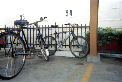 Bicicletas en parqueadero de unidad residencial. Plano medio.
