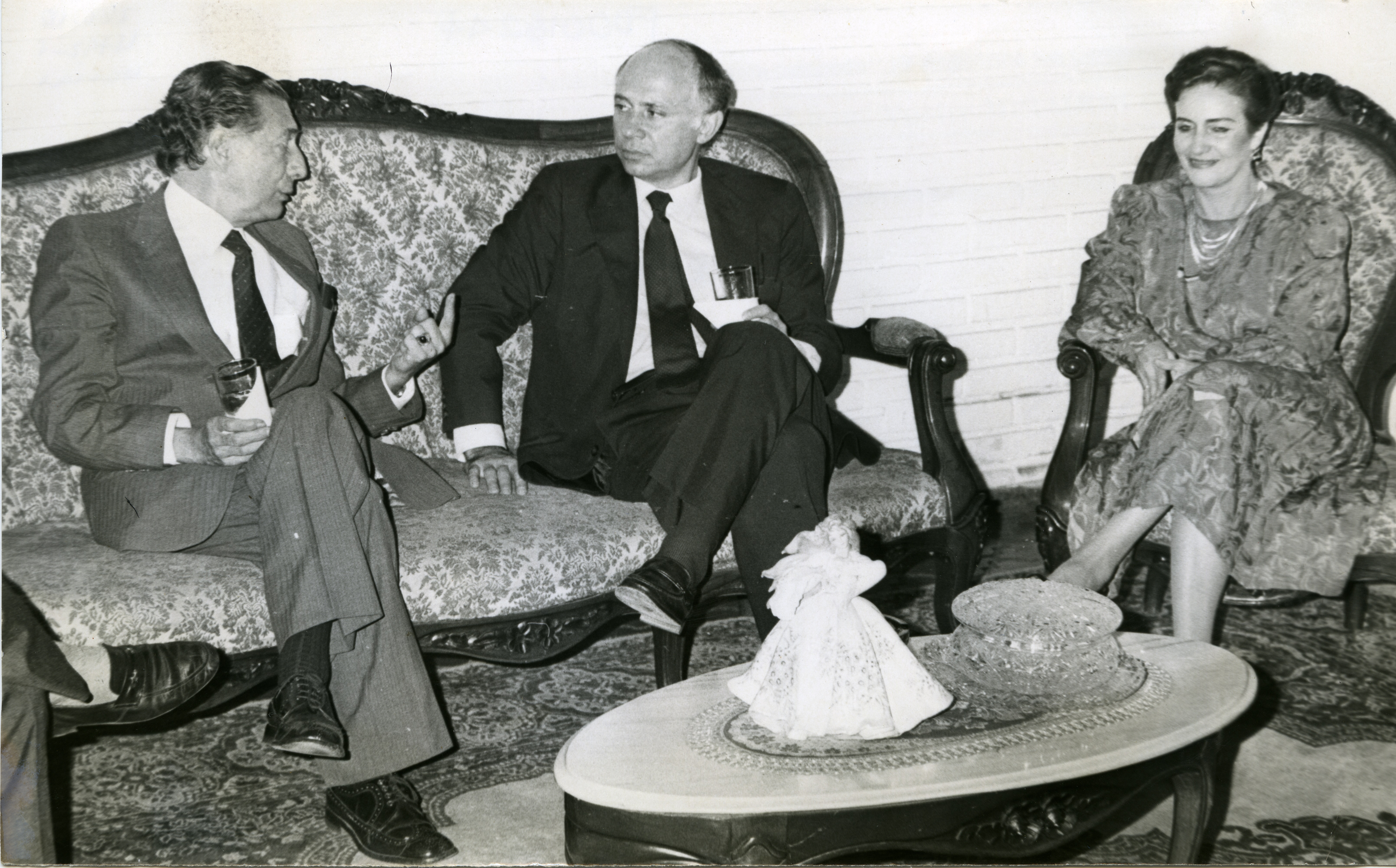 Rodrigo Lloreda Caicedo en conversación con los esposos Lombana en el marco de un coctel ofrecido en su honor.