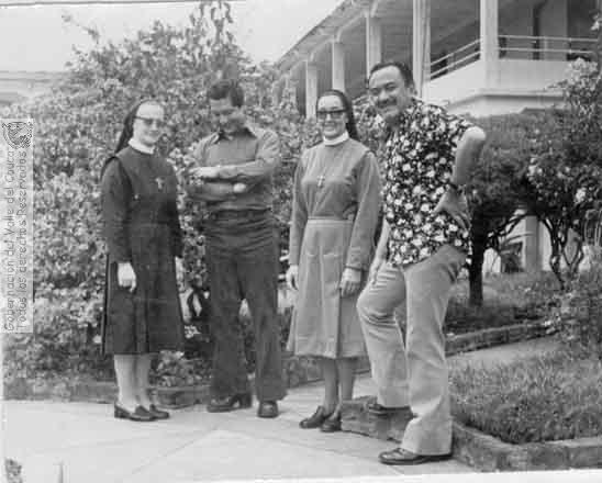 s. n., s. n., s. n. & s. n. (1974). El cantante y compositor Victor Hugo Ayala de visita en el Colegio Imaculada Concepción con las hermanas fundadoras del Concurso de música vernácula Mono Núñez & 602841. GINEBRA: Biblioteca Departamental Jorge Garces Borrero.