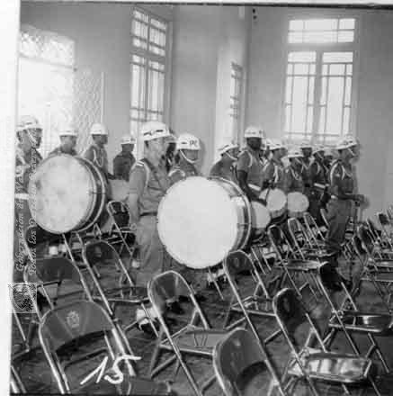 Banda de la Policia en el aula máxima del Instituto Antonio José Camacho, Cali, 1973