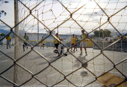 | dc.description | Plano medio. Superposición de mallas que otorga simetría a escena. Futbolistas en franja central. | spa |