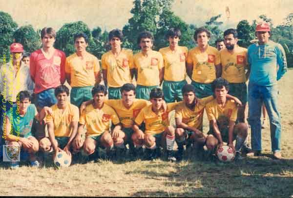 Futbolistas integrantes de la Selección Ulloa, que representó al Valle en los Juegos Nacionales Campesinos, en los que se coronaron campeones. Ulloa. C.1989.
