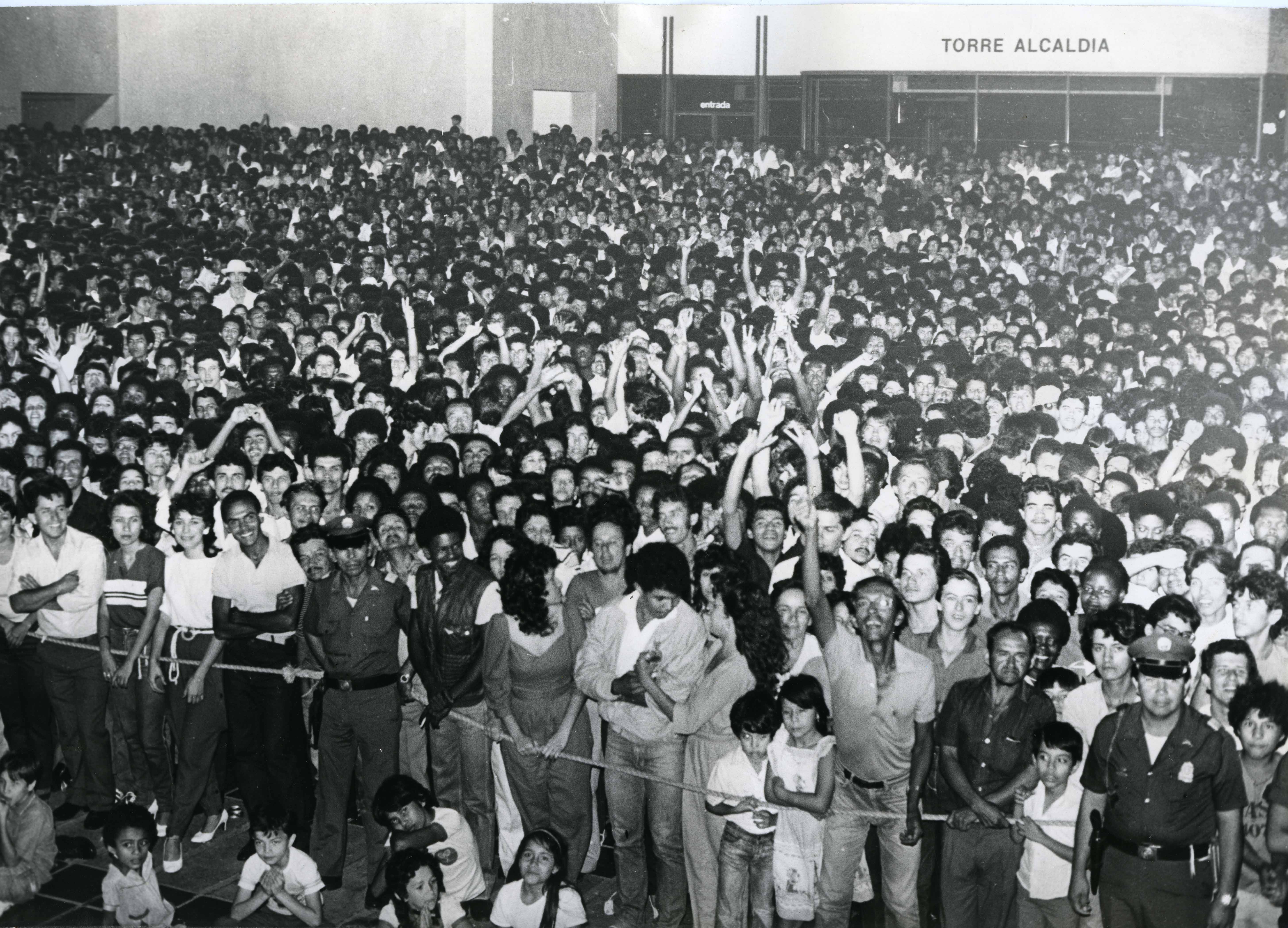 En el pie de foto dice lo siguiente: Masivamente respondió la gente caleña a las verbenas populares del miércoles en la noche. La gráfica corresponde a la fiesta que se armó en el barrio Panamericano al sur de la ciudad.- El Archivo del Patrimonio Fotográfico y Fílmico del Valle del Cauca es responsabilidad de la Biblioteca Departamental del Valle Jorge Garcés Borrero, por convenio de cooperación suscrito con la Secretaria del Cultura Departamental, con el fin de aunar esfuerzos para su conservación, preservación y divulgación del Archivo entre la comunidad Vallecaucana, especialmente entre los estudiantes e investigadores que visitan la Biblioteca, propiciando el su uso y consulta permanente. La universidad Icesi es un colaborador en el proceso de difusión, facilitando la tecnología que permite la consulta de las imágenes.