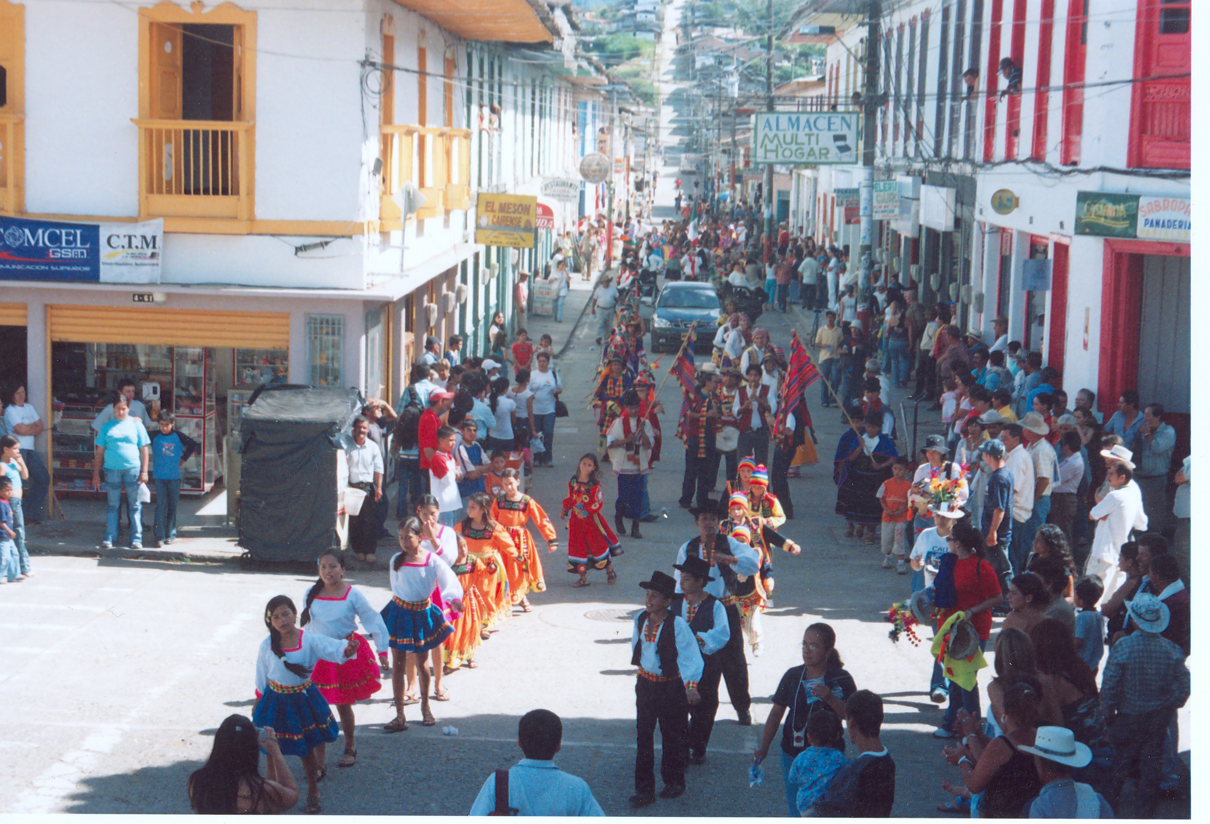 El Cairo, Valle del Cauca. Fundado en 1920, por Pedro Arango y otros. Nombres: Las Vueltas, Haceldama. Municipio desde 1947. Economía importante en agricultura, caficultura, entre otros. Atractivo turístico es su Bosque Natural de Las Amarillas en la Serranía del paraguas. Observamos en la imagen, Grupo de Danza Suyal, de Cali Valle. Se aprecia el desfile de los bailarines por la carrera 5 calle 7