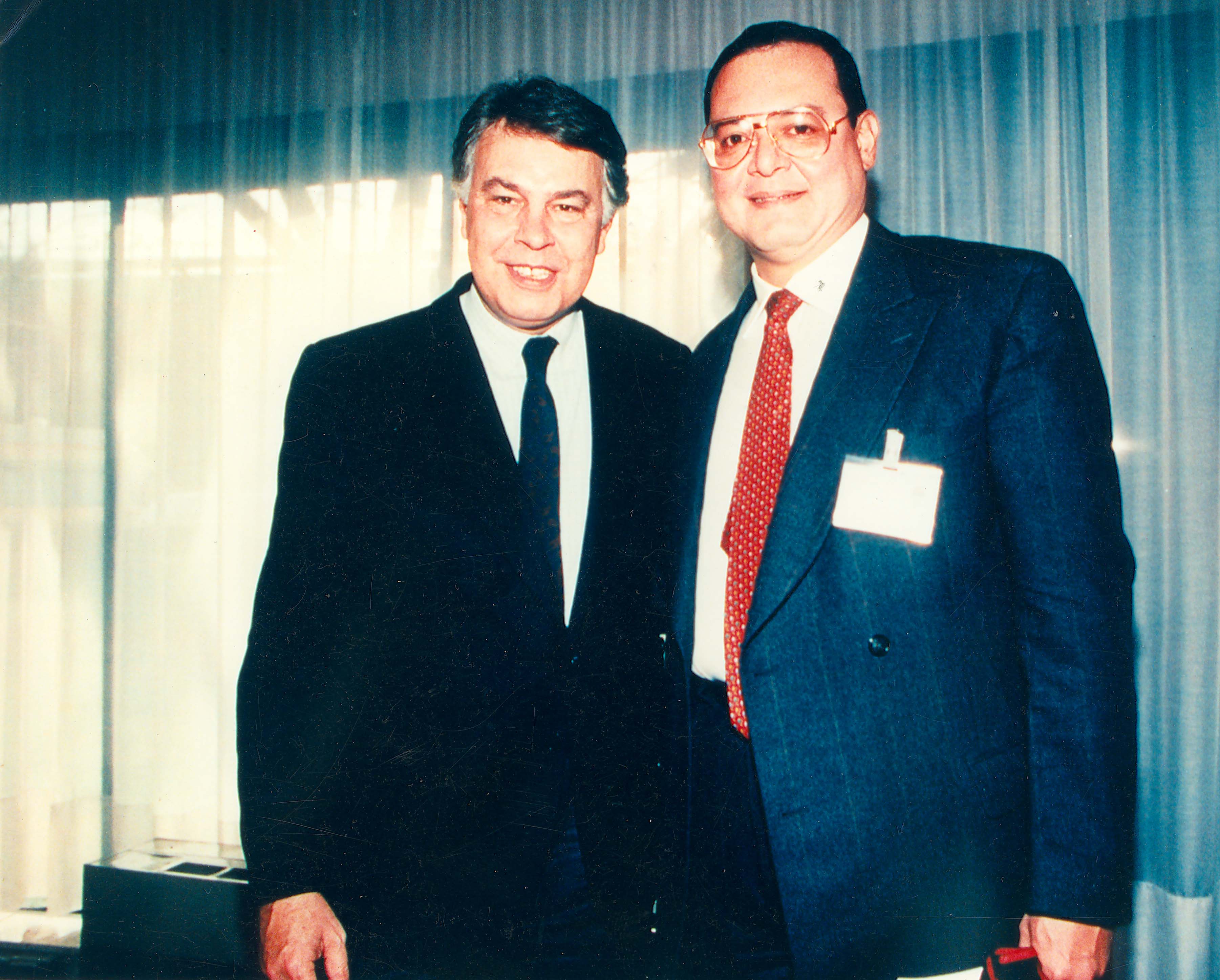En diálogos con medios de comunicación del Valle del Cauca, José Renán Trujillo García, reitera su compromiso con la Internacional Socialista. Este hecho lo ratifica la foto, en la que el congresista se encuentra junto a Felipe González, del Partido Socialista Obrero Español, con el que tiene permanente contacto. Fotografía tomada el 7 de Agosto de 1997