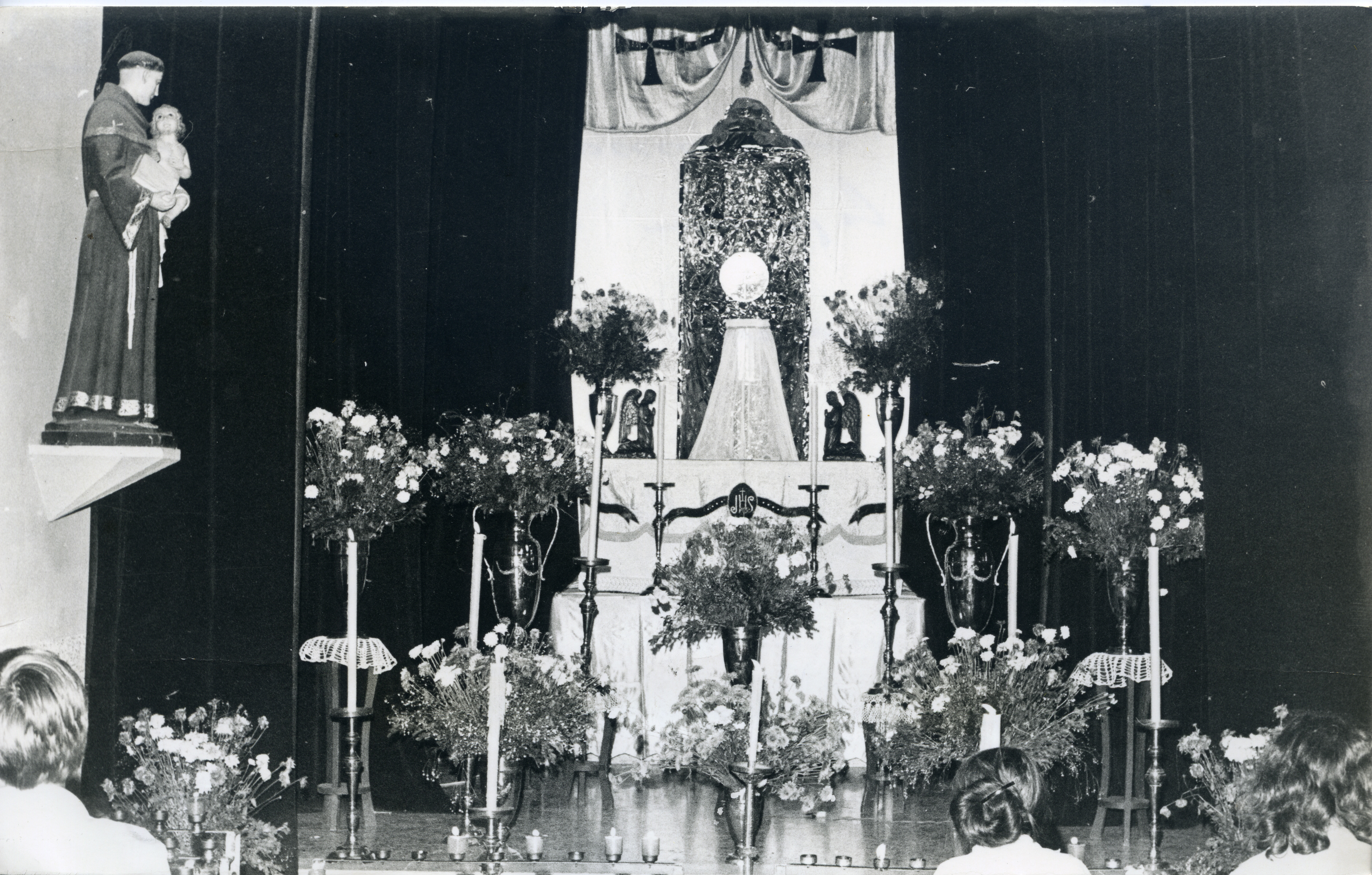 El altar de la Iglesia San Nicolas, adornado con velones y profusión de flores