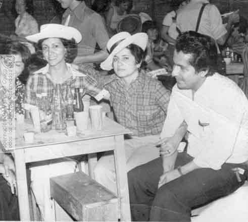 Compartiendo unas cervezas: Hilda Barreto, Luz Nelly Velásquez, Fanny Rodas Flóres y Humberto García. Caicedonia. 1978
