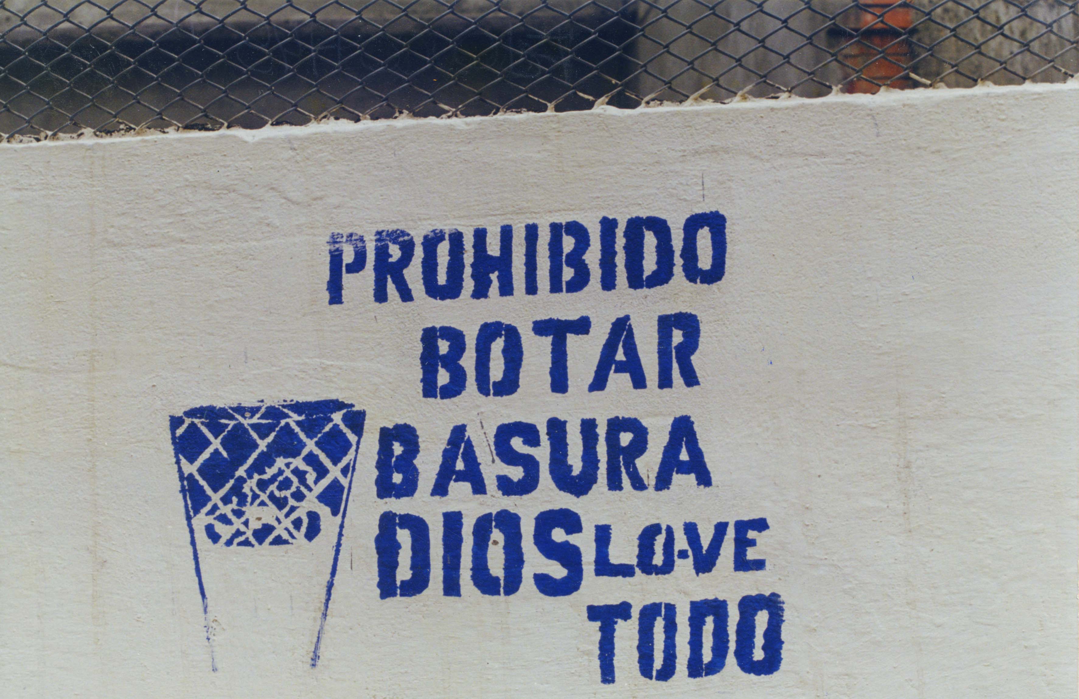 Un aviso cívico en un muro de Cali, invitando a mantener limpia la ciudad. Obsérvese el juego de ideas con “lo-ve”. / El Archivo del Patrimonio Fotográfico y Fílmico del Valle del Cauca es responsabilidad de la Biblioteca Departamental del Valle Jorge Garcés Borrero, por convenio de cooperación suscrito con la Secretaria de Cultura Departamental, con el fin de aunar esfuerzos para su conservación, preservación y divulgación del Archivo entre la comunidad Vallecaucana, especialmente entre los estudiantes e investigadores que visitan la Biblioteca, propiciando el su uso y consulta permanente. La universidad Icesi es un colaborador en el proceso de difusión, facilitando la tecnología que permite la consulta de las imágenes.