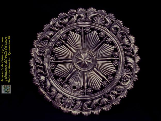 Aureola en plata labrada y calada. Convento de San Joaquín, Museo de San Francisco, Cali. C. 1995