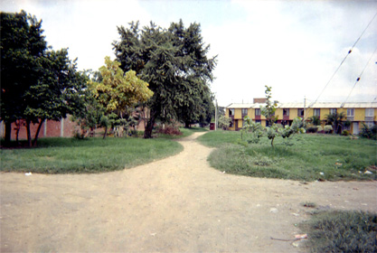 | dc.description | Se observa camino en medio de zona verde. Vegetación en el plano medio. Al fondo residencias. Plano general. | spa |