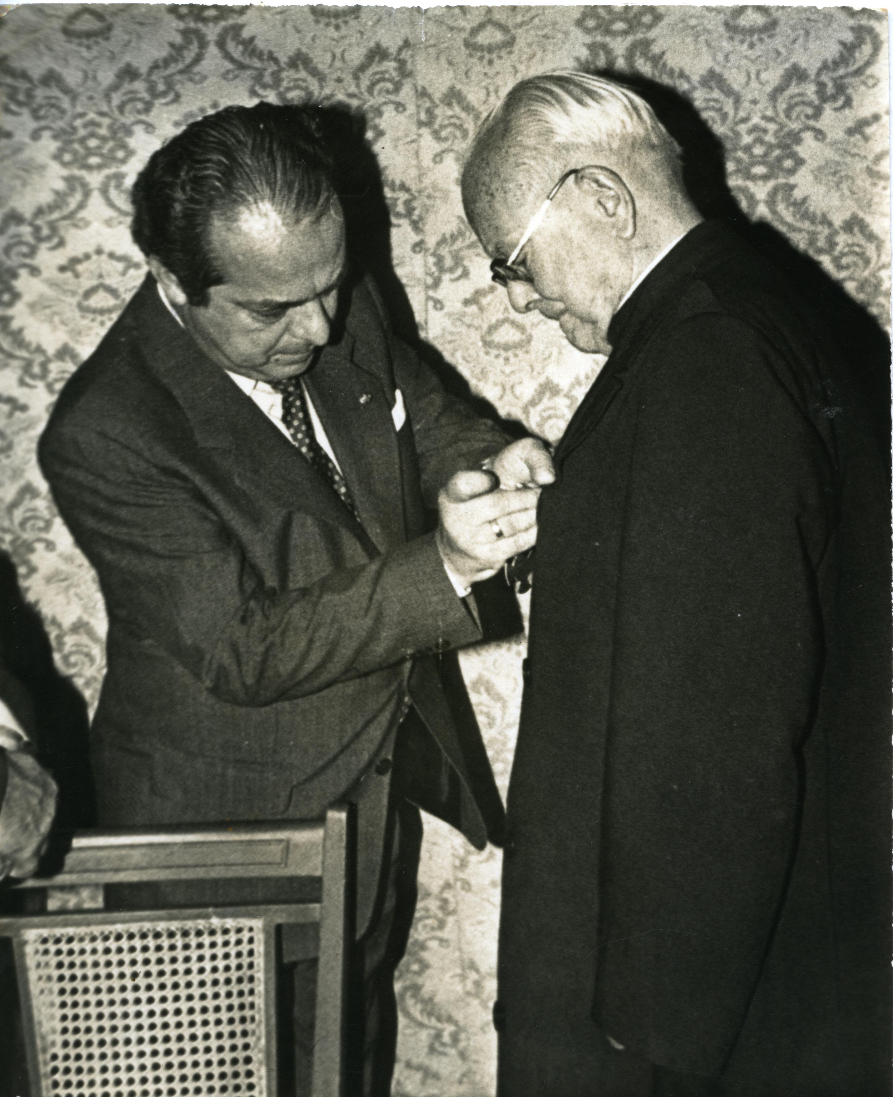 En la gráfica aparece el doctor Hernando Valencia condecorando a Gabriel Giraldo