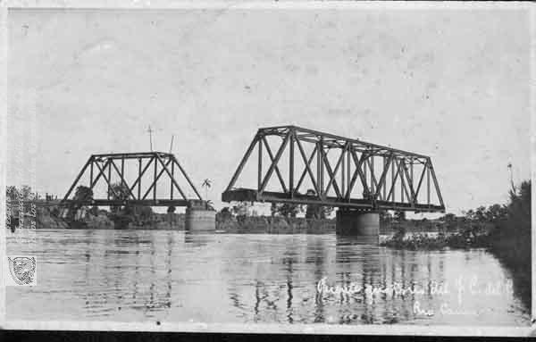 Puente ferroviario giratorio sobre el río Cauca, Juanchito. Santiago de Cali. Fecha por identificar.