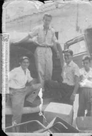 Grupo de comerciantes descargando el camión utilizado para los negocios. Pradera, C. 1960.