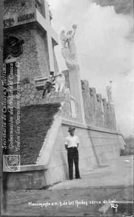 Monumento a Nuestra Señora de Los Andes. Homenaje a las comunidades indígenas desplazadas por la colonización española; en especial a los indios Yanaconas que llegaron con sebastían de Belalcazar a su legada a tierras del actual Valle del Cauca. Yanaconas. C. 1960.