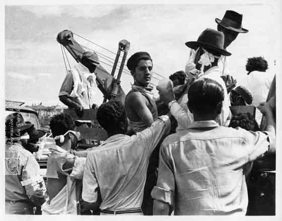 Brigadistas y voluntarios ayudan a la remoción de escombros. Santiago de Cali, 7 de agosto de 1.956