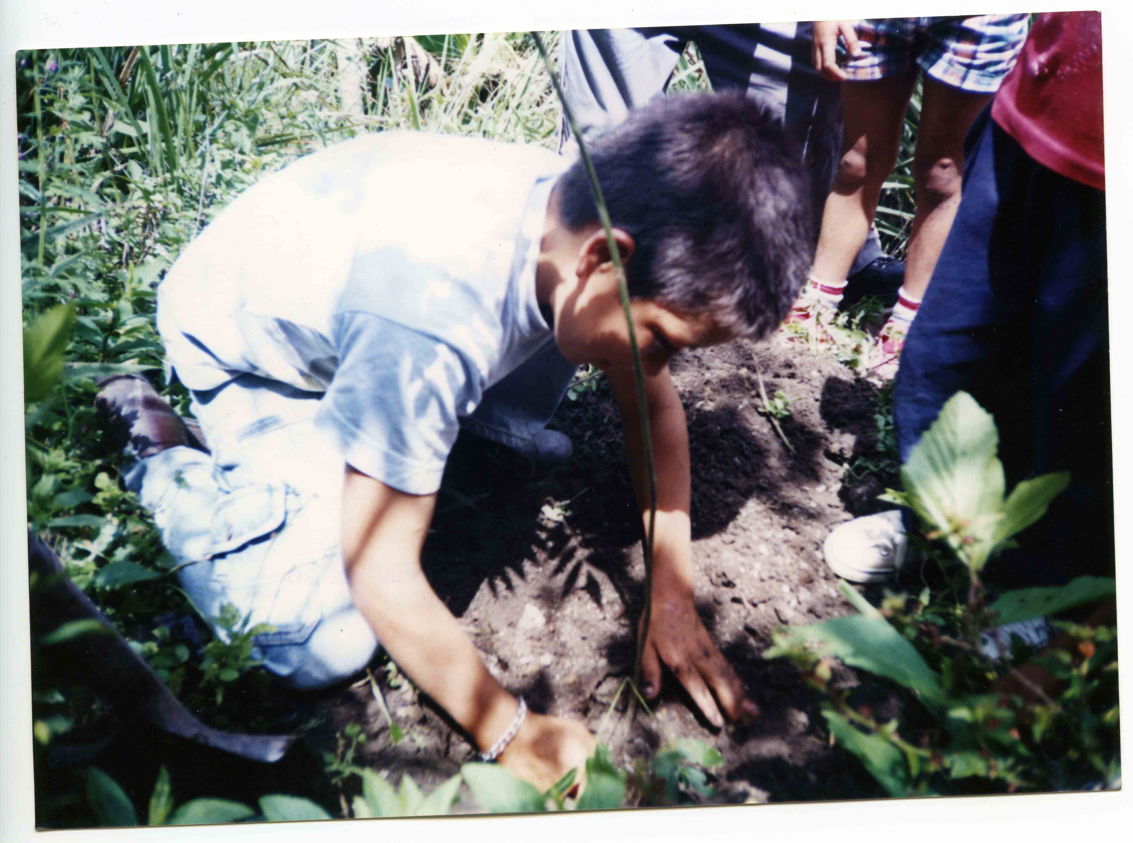 Argelia, Valle del Cauca. Fundado en 1904, por Manuel Mejía, José Antonio Murillo, Epifanio Chávez y Justiano Hincapié. Nombres: Agua Mona y después Medellíncito. Municipio desde 1956. Economía importante en agricultura, caficultura, ganadería, entre otros. Atractivo turístico: Playas del Rio Las Vueltas y sus fiestas patronales. Observamos en la imagen, siembra de árboles, alumnos Escuela Vereda el Raizal