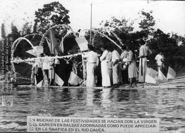 s. n., s. n., s. n., s. n., s. n. & s. n. (1950). Fiestas de la Virgen del Carmen, desfile en balsas adornadas por el río Cauca & 200874. LA UNION: Biblioteca Departamental Jorge Garces Borrero.