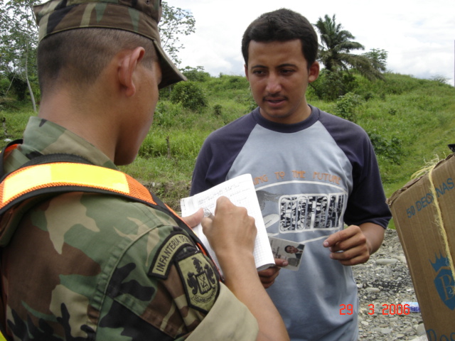 Se aprecia personal del ejercito realizando consultas a ciudadano en Buenaventura.