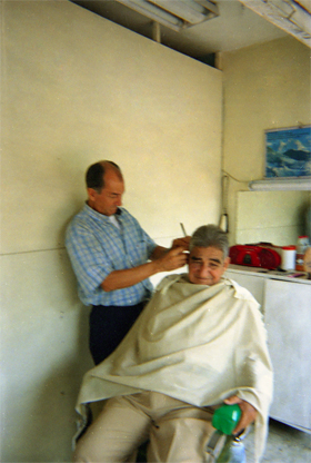 Ortiz Arias, C. (2005). Se aprecia el momento en que un hombre le corta el cabello a su cliente. Santiago de Cali: Biblioteca Departamental Jorge Garces Borrero.