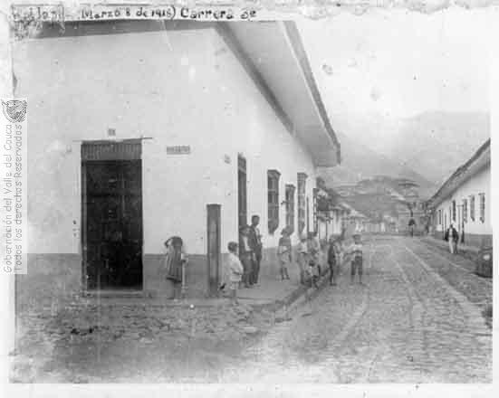 Casas y calle laterales a la Plaza principal en 1917.Roldanillo.